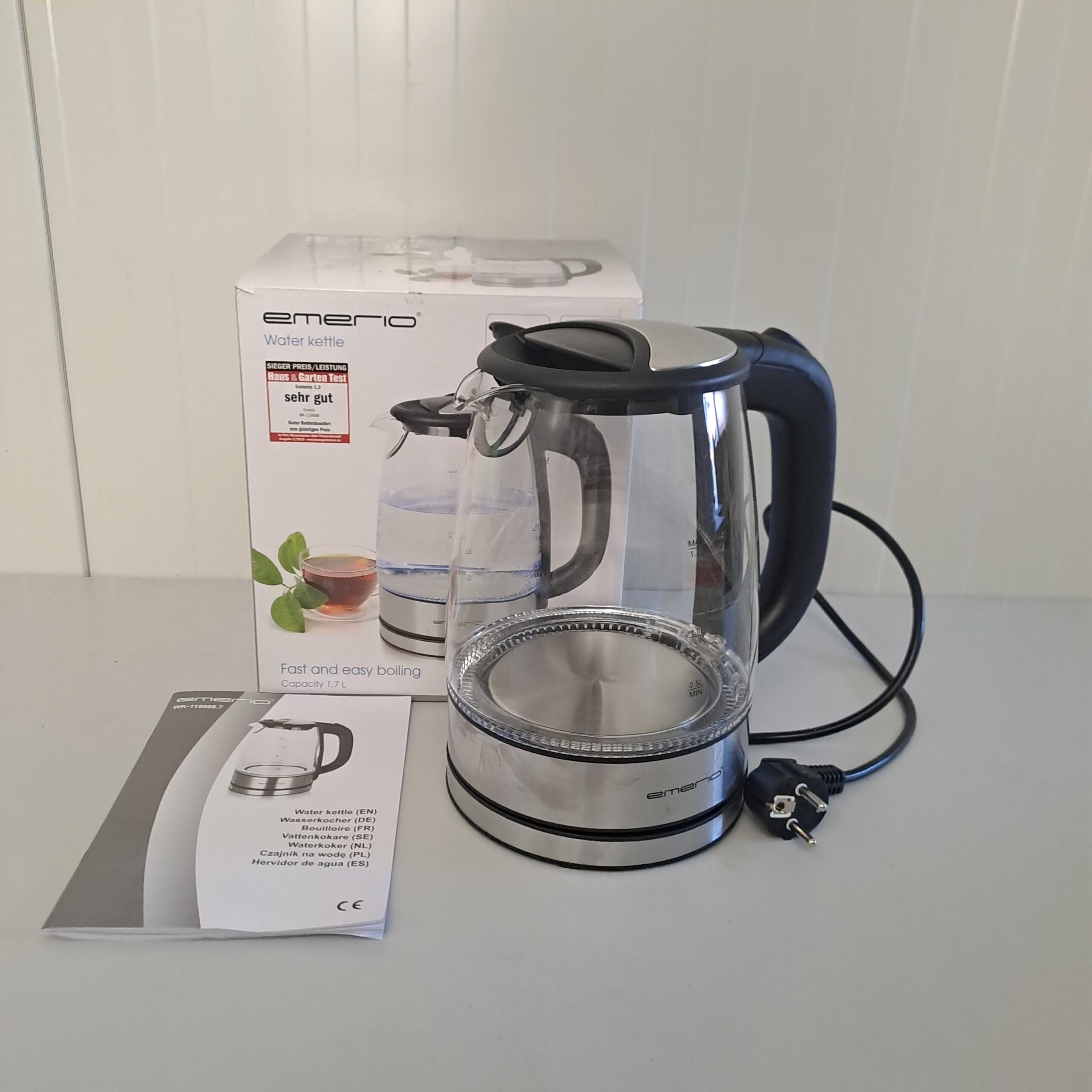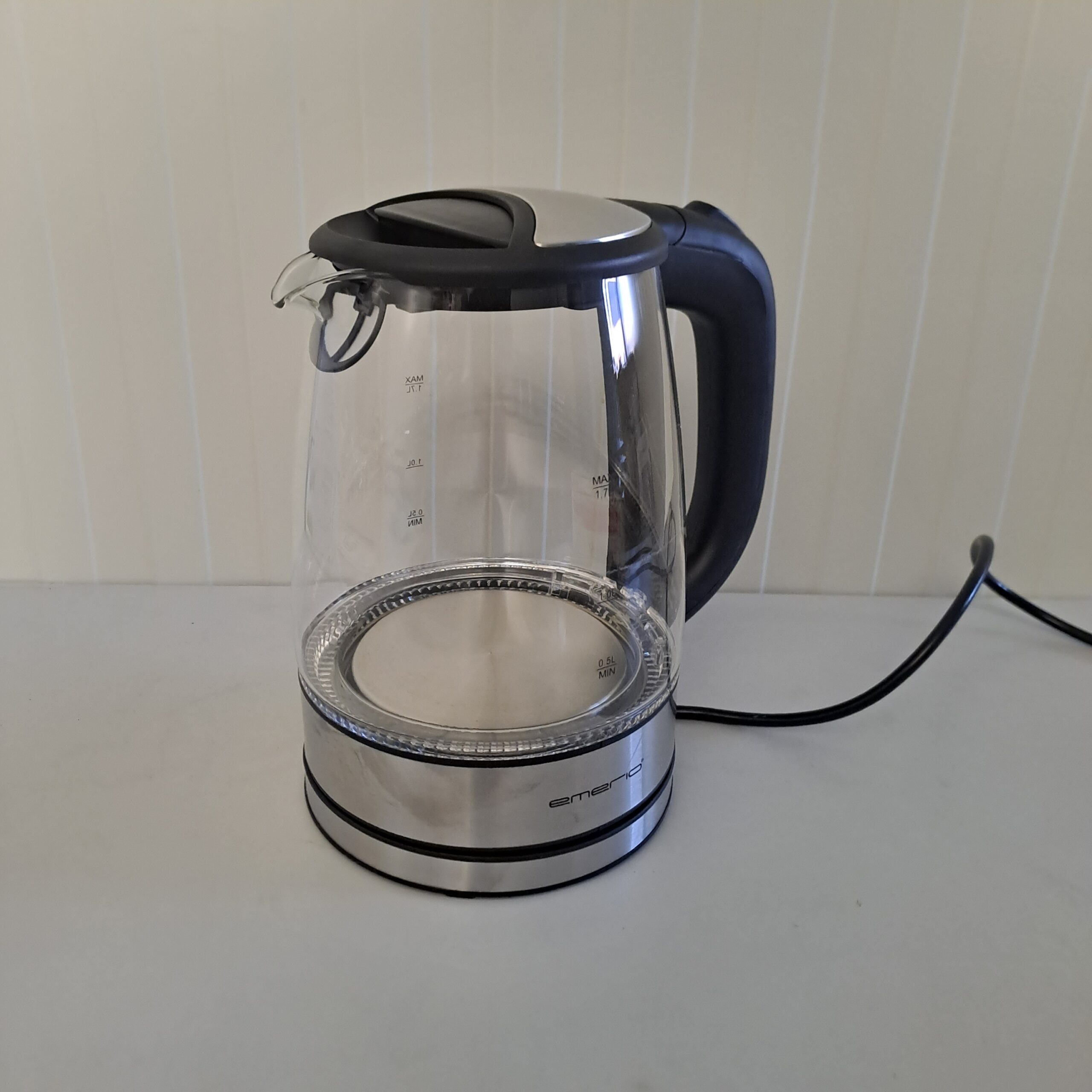 Volum: 1,7 L, corp din sticlă iluminat cu LED, filtru anti-calcar