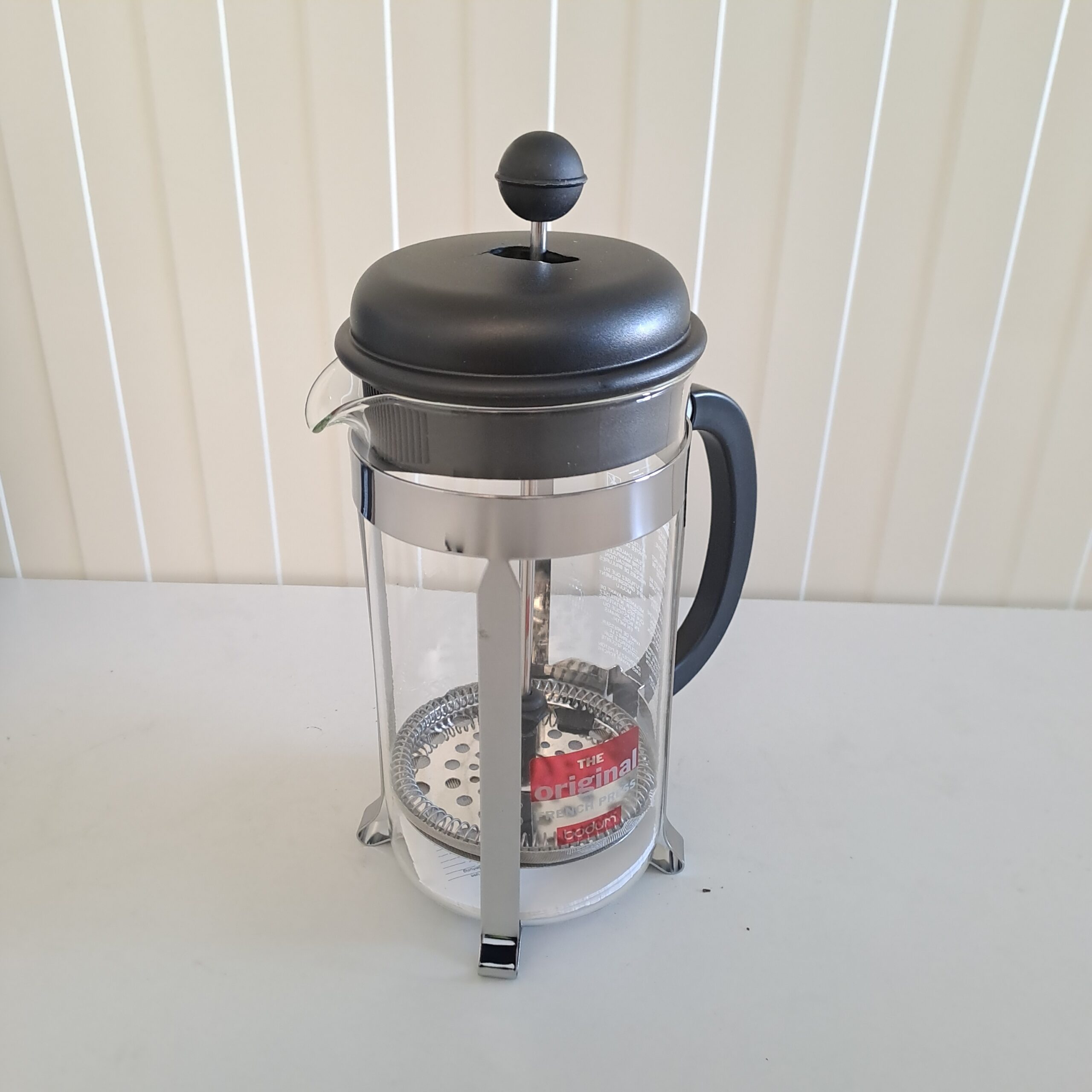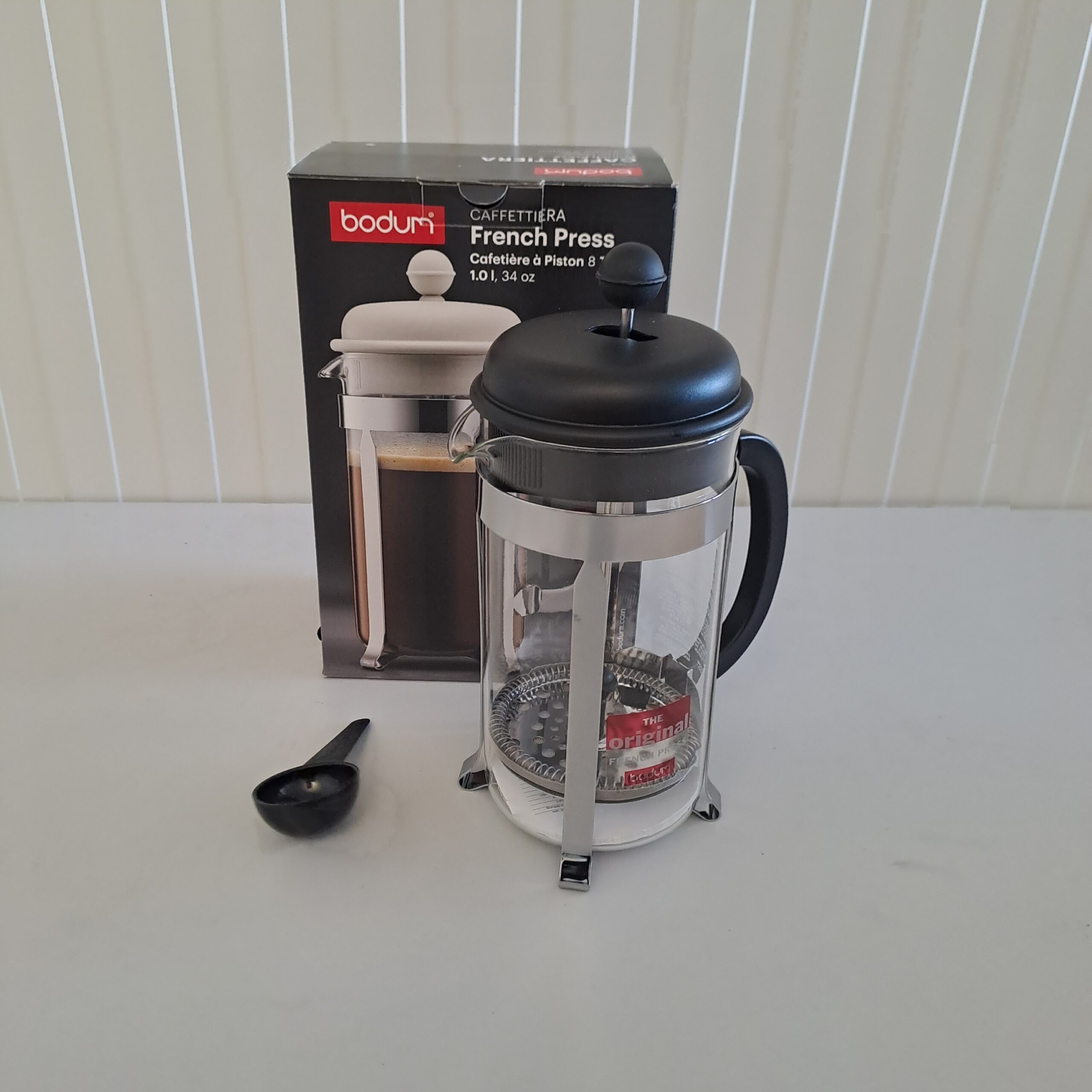 Bodum Caffettiera – Cafetieră French Press, capac din plastic negru și cadru din oțel inoxidabil