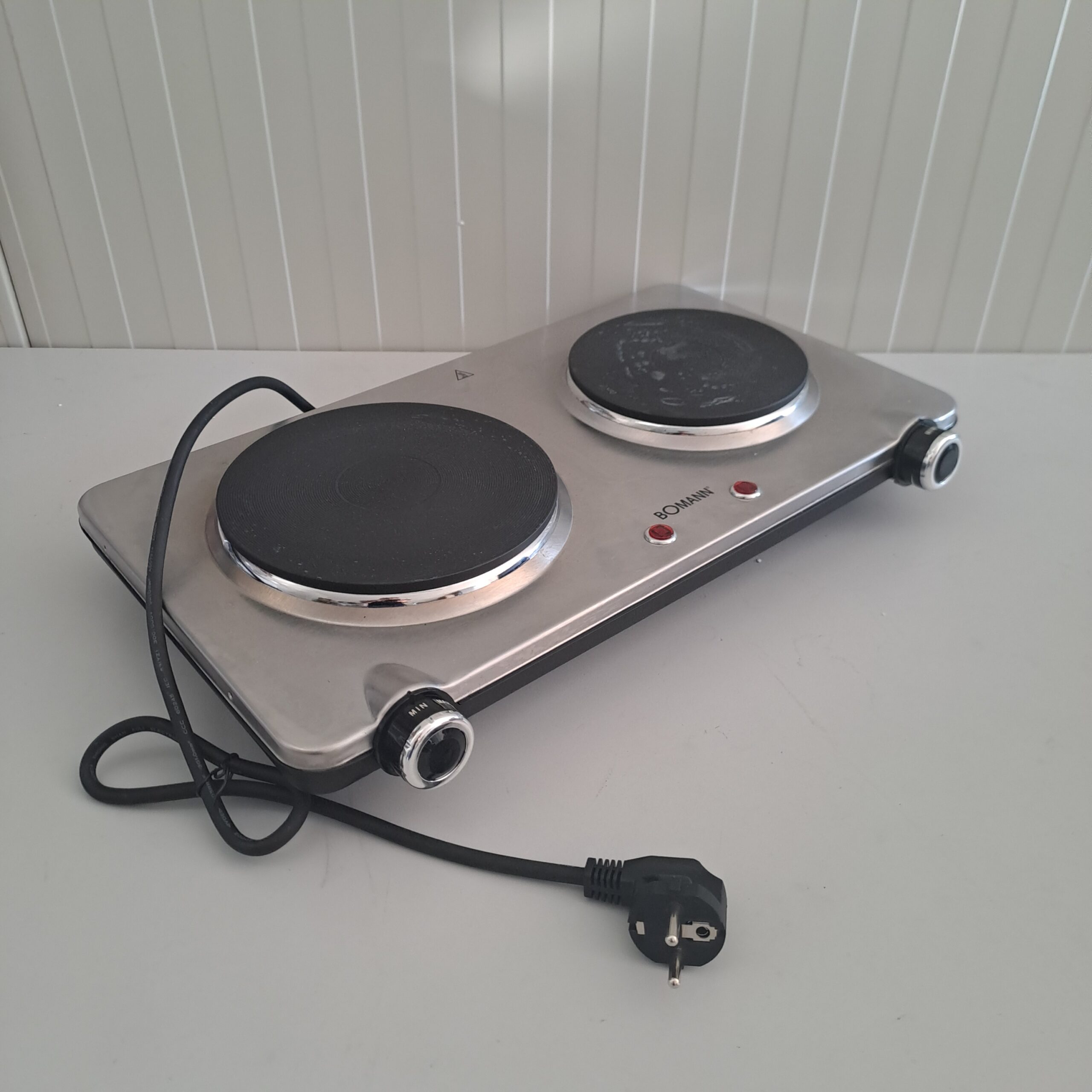 🔹 Plită electrică dublă cu 2 zone de gătit – diametru 18,5 cm și 15,5 cm.